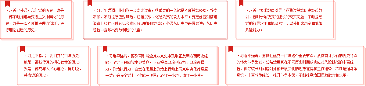 歷史是最好的教科書。黨的十八大以來,習近平同志圍繞中國共產黨歷史發表了一系列重要論述,系統回顧我們黨團結帶領中國人民不懈奮斗的光輝歷程,深入總結黨在各個歷史時期創造的理論成果、積累的寶貴經驗、鑄就的偉大精神,深刻闡明黨為中華民族作出的偉大貢獻、為解決人類問題提供的中國智慧中國方案,展望黨和人民事業發展的光明前景。這些重要論述立意高遠,內涵豐富,思想深刻,是習近平新時代中國特色社會主義思想的重要組成部分。